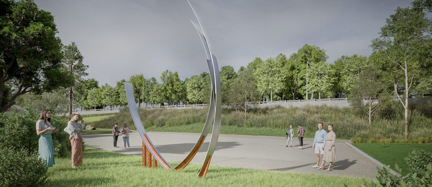 À la suite d’un concours lancé auprès de professionnels en art public, la proposition de l’artiste Karole Biron intitulée Aux confluences a été retenue.